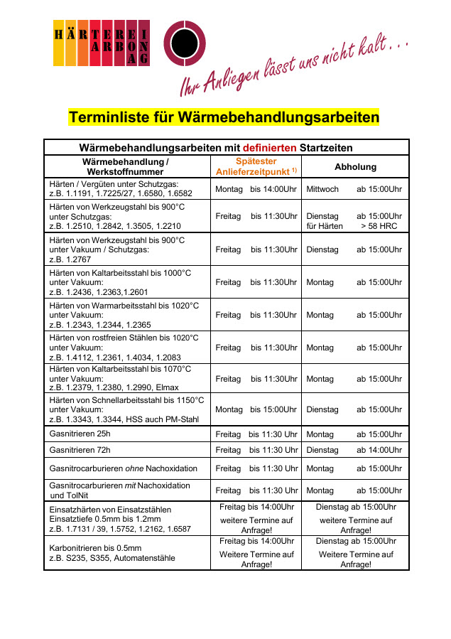 Bei uns können Sie auch ihren Speditionsauftrag platzieren, telefonisch oder aufwareneingang@haertereiarbon.ch .