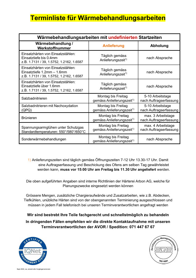 Ihre Wärmebehandlungsaufträge werden direkt zur Härterei Arbon gefahren.